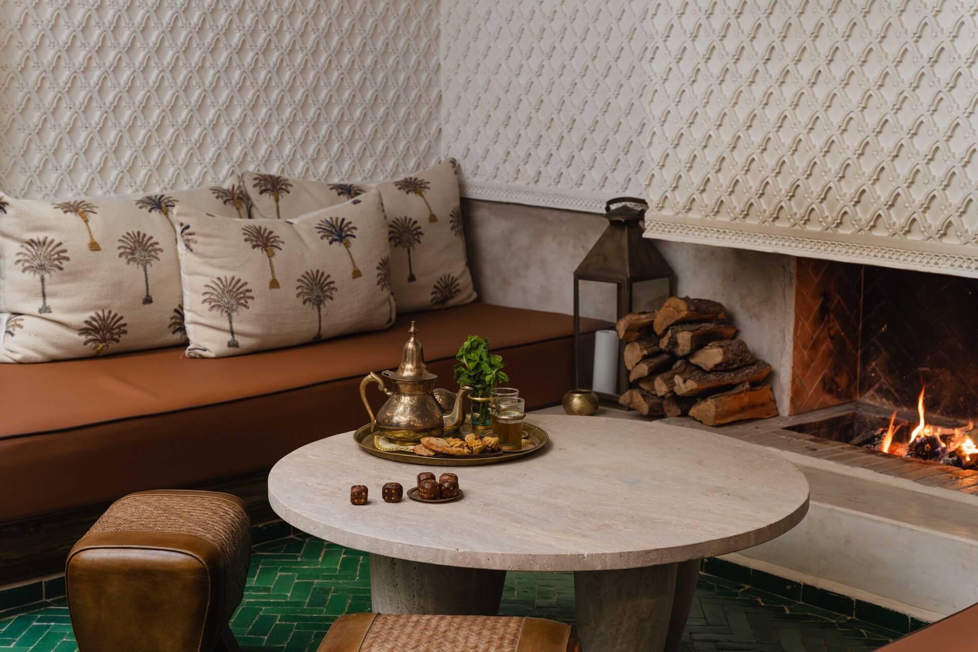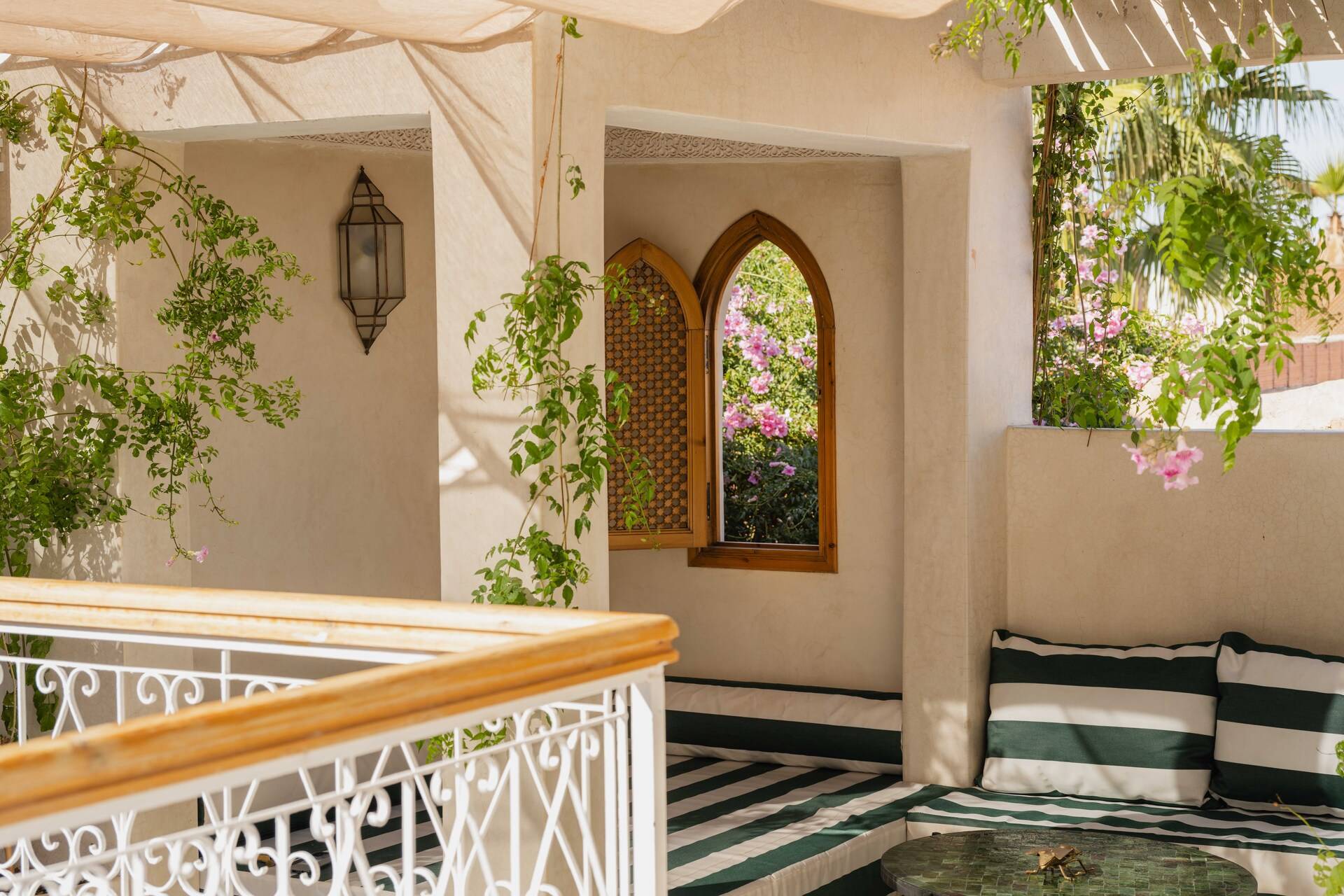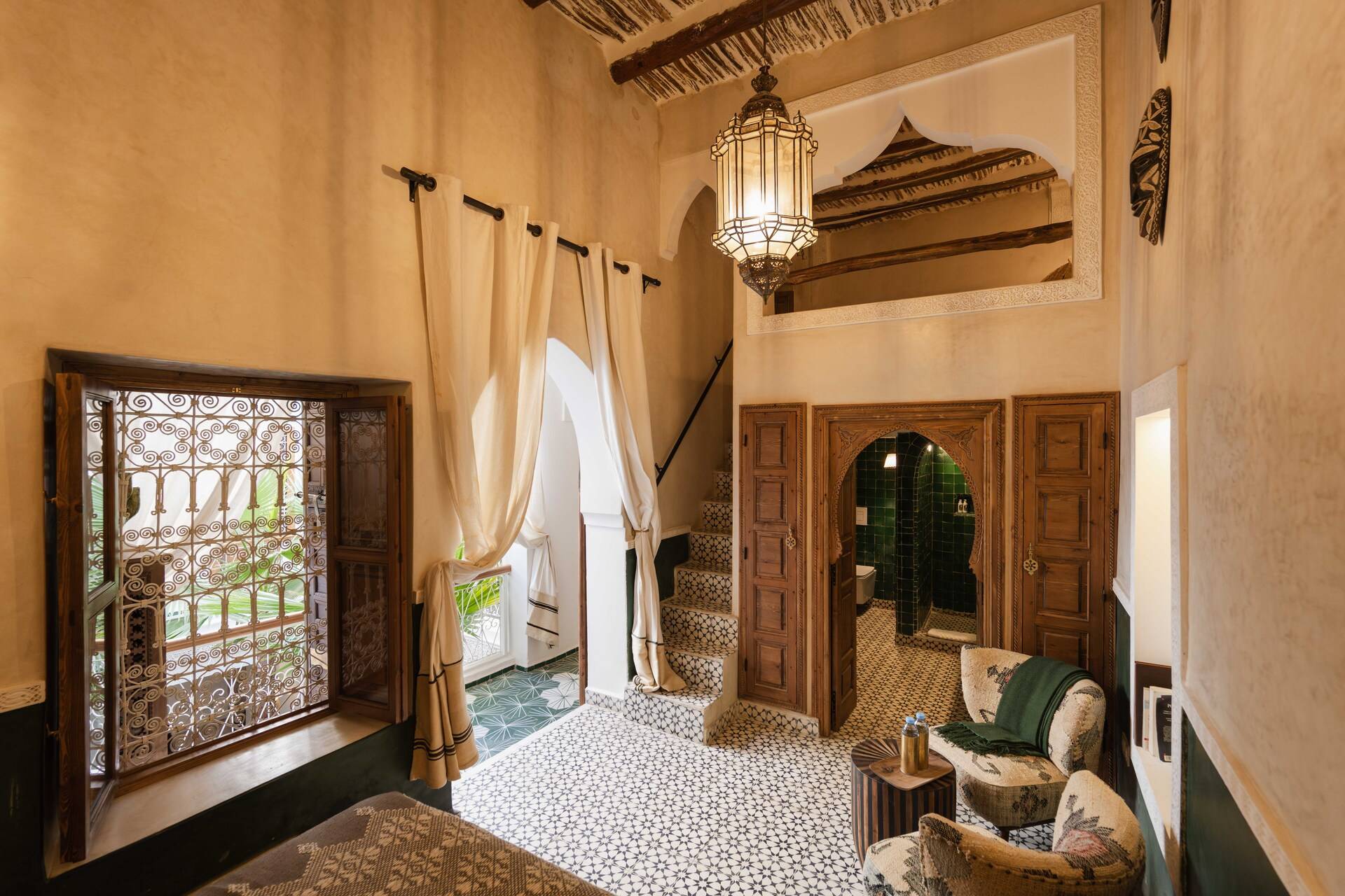 The riad’s sunny terraces are a highlight, offering open views over the Medina rooftops and renowned landmarks such as the Koutoubia Mosque and the Secret Garden. They invite slow mornings, peaceful afternoons, and unforgettable evenings under the Marrakech sky.