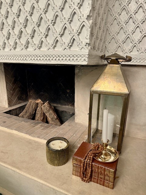 A comfortable seated area surrounds the fireplace, creating an intimate atmosphere for relaxed evenings and meaningful conversations. During the cooler months, the fireplace adds warmth and coziness, making it the perfect place to unwind after a day in the Medina.