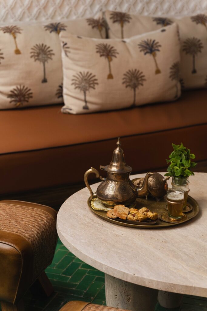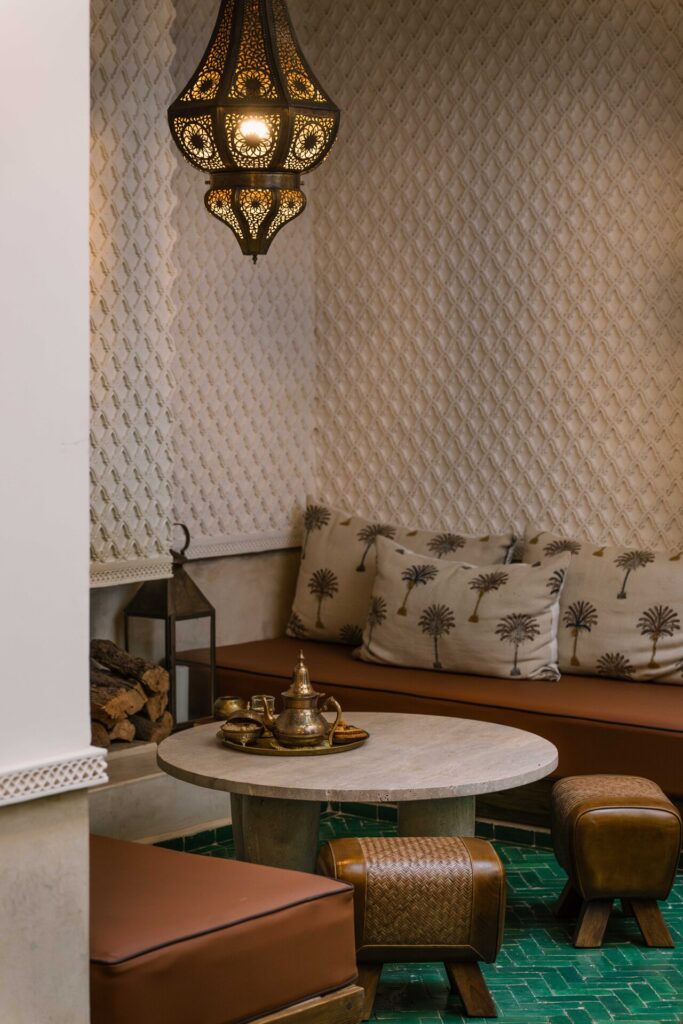 Whether enjoying a quiet morning coffee, reading a book, or gathering with friends, the salon is a place to pause, breathe, and feel at home at Riad Mint.